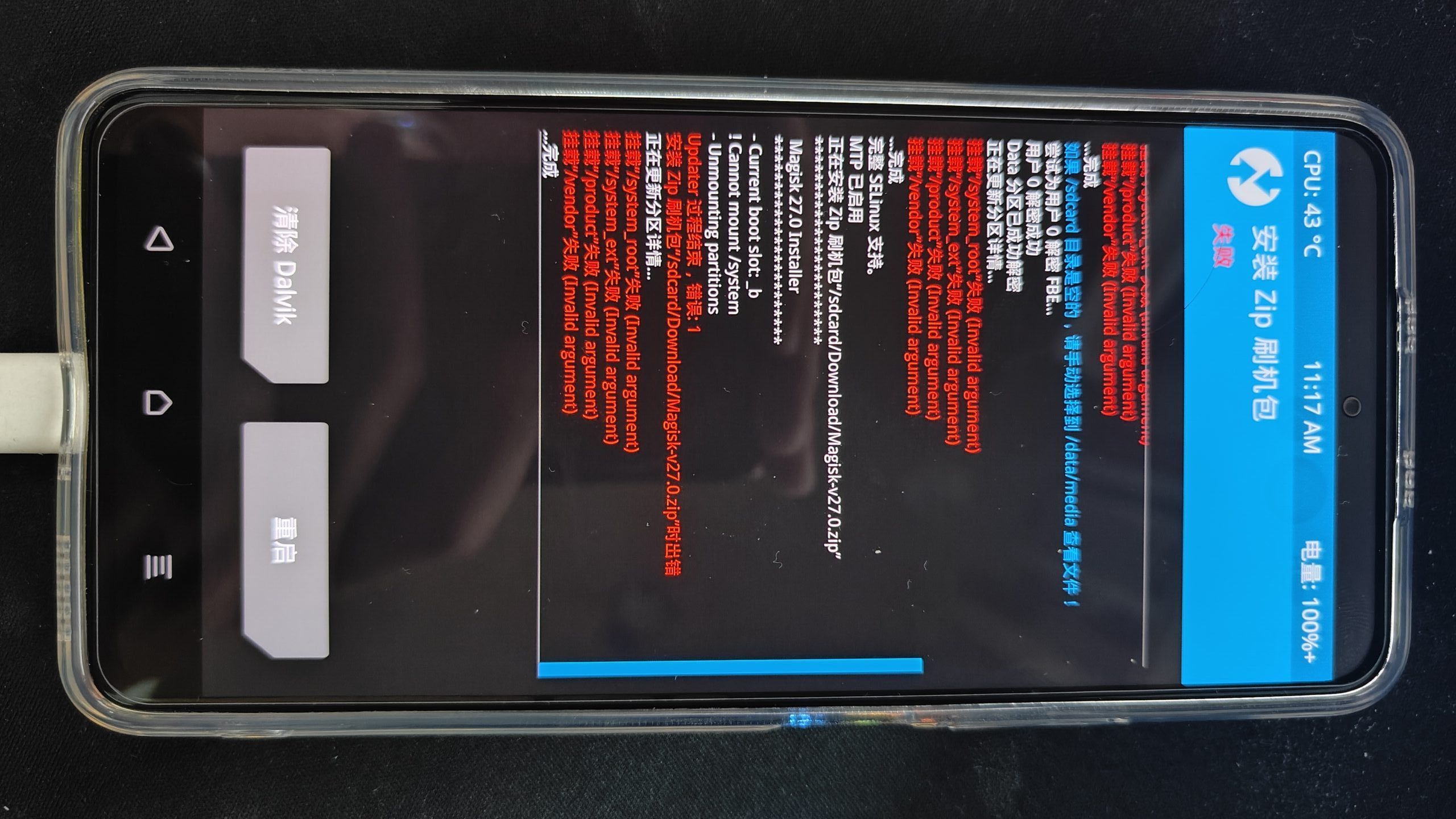 下面就是TWRP在B分区,ROM是刷写到A分区,通过卡刷的方式刷写magisk和gapps都是失败的😅