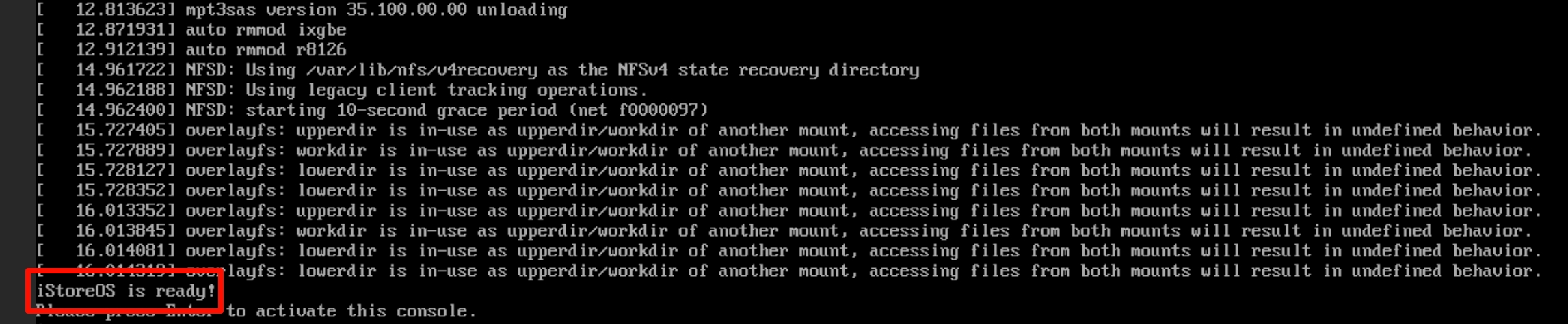 安装完成后会提示iStoreOS is ready,这个时候按回车进入终端
