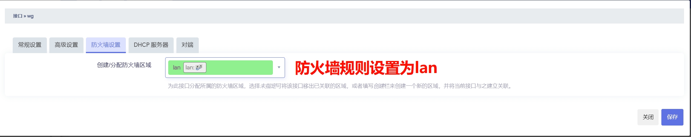 所以正确的防火墙配置应该是先创建一个如下图的防火墙规则,然后再将这个规则应用到wireguard接口。